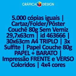 5.000 cópias iguais | Cartaz/Folder/Pôster 29,7x63cm | id 463666 | 30x63cm A4 TRIPLO | 3x Sulfite | Papel Couchê 80g PAPEL + BARATO | Impressão FRENTE e VERSO Coloridos | 4x4 cores