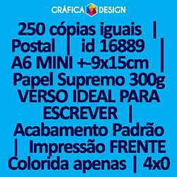 250 cópias iguais | Postal | id 16889 | 15x9cm A6 MINI +-4 dentro da Sulfite | Papel Supremo 300g VERSO IDEAL PARA ESCREVER | Impressão FRENTE Colorida apenas | 4x0 cores