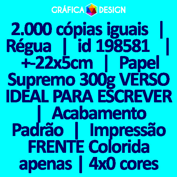 2.000 cópias iguais | Régua | id 198581 | +-22x5cm | Papel Supremo 300g VERSO IDEAL PARA ESCREVER | Impressão FRENTE Colorida apenas | 4x0 cores